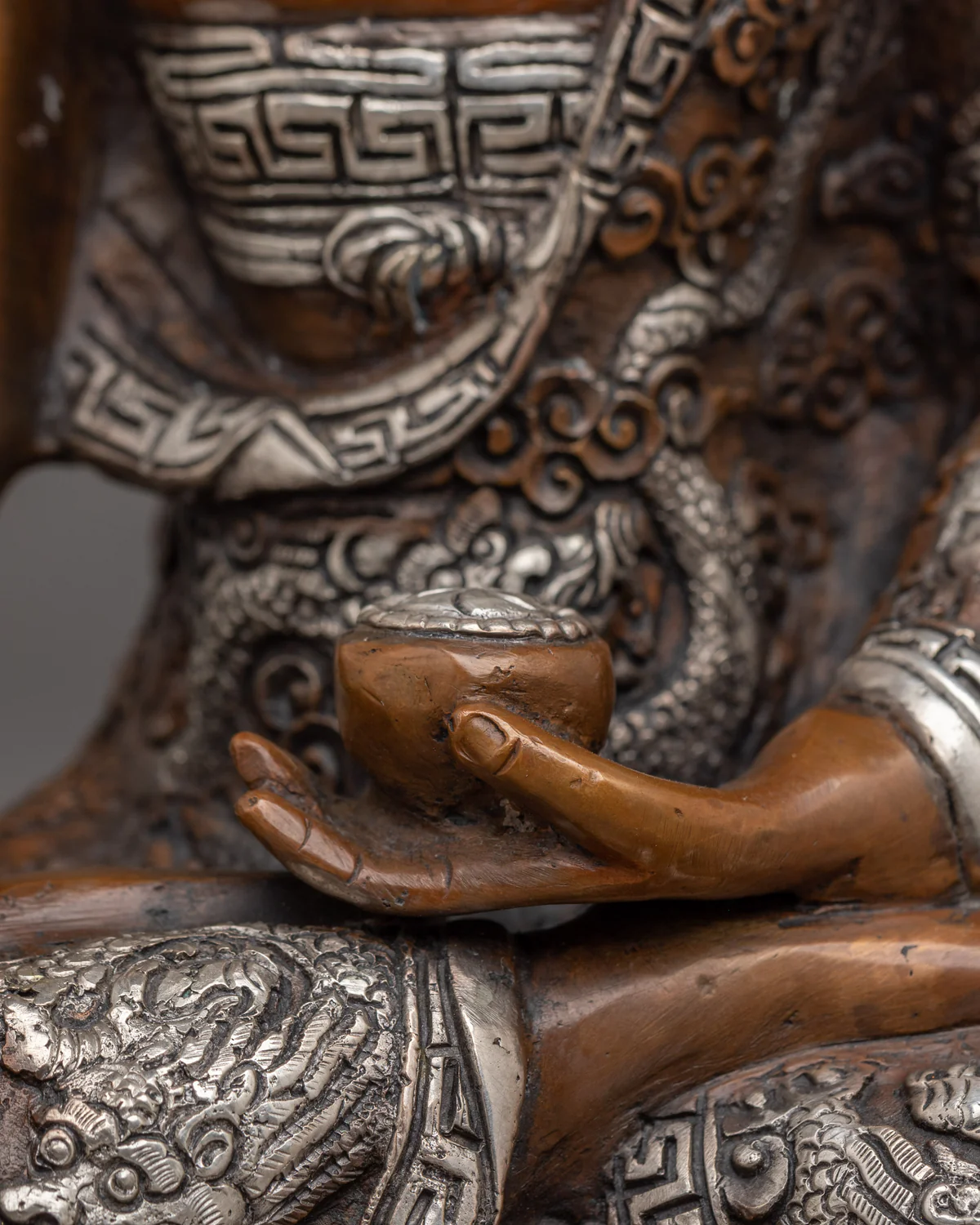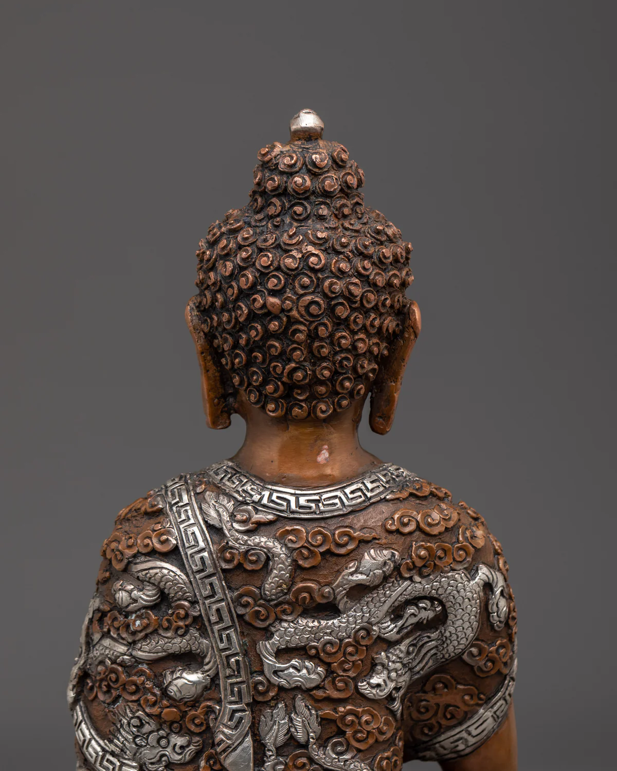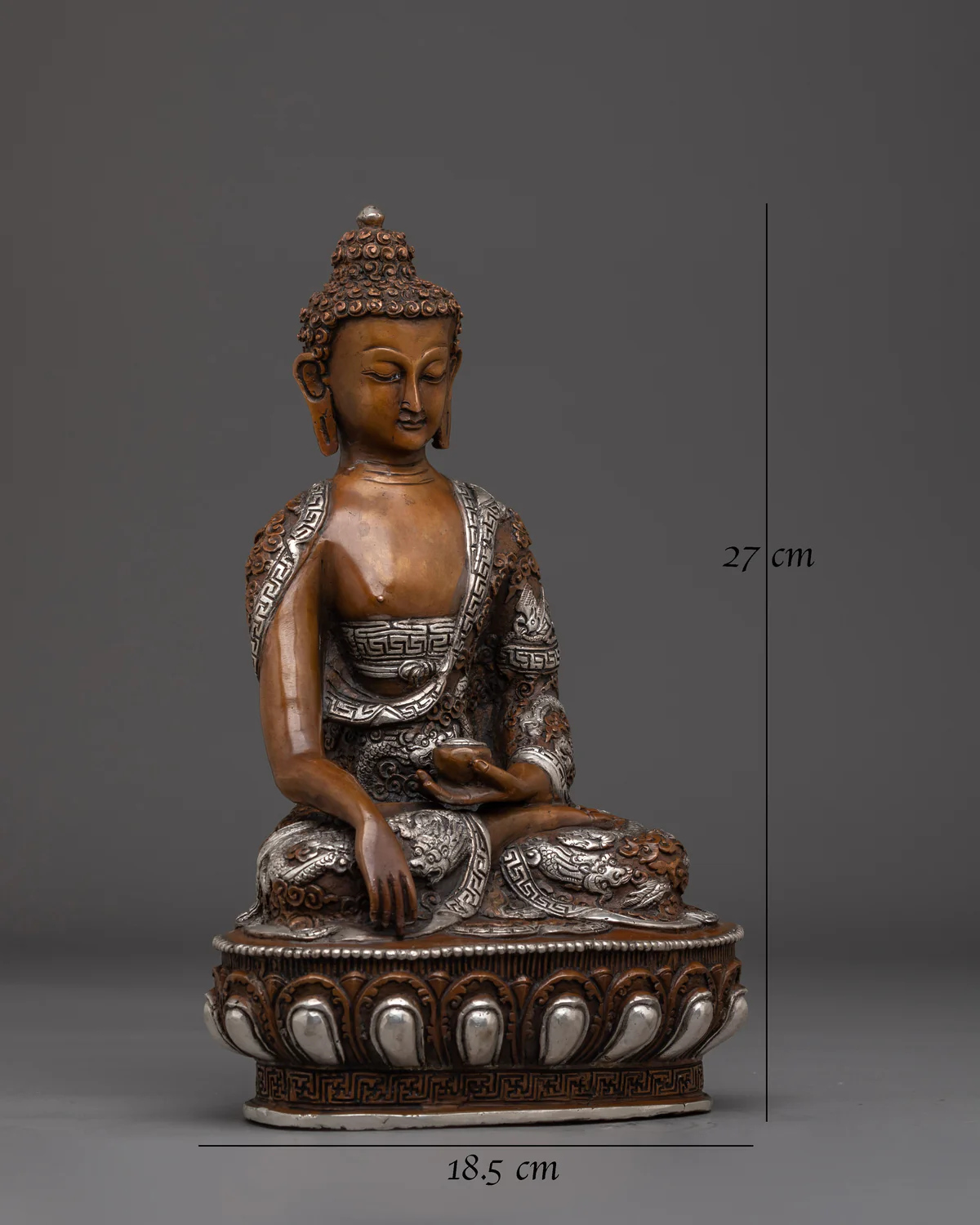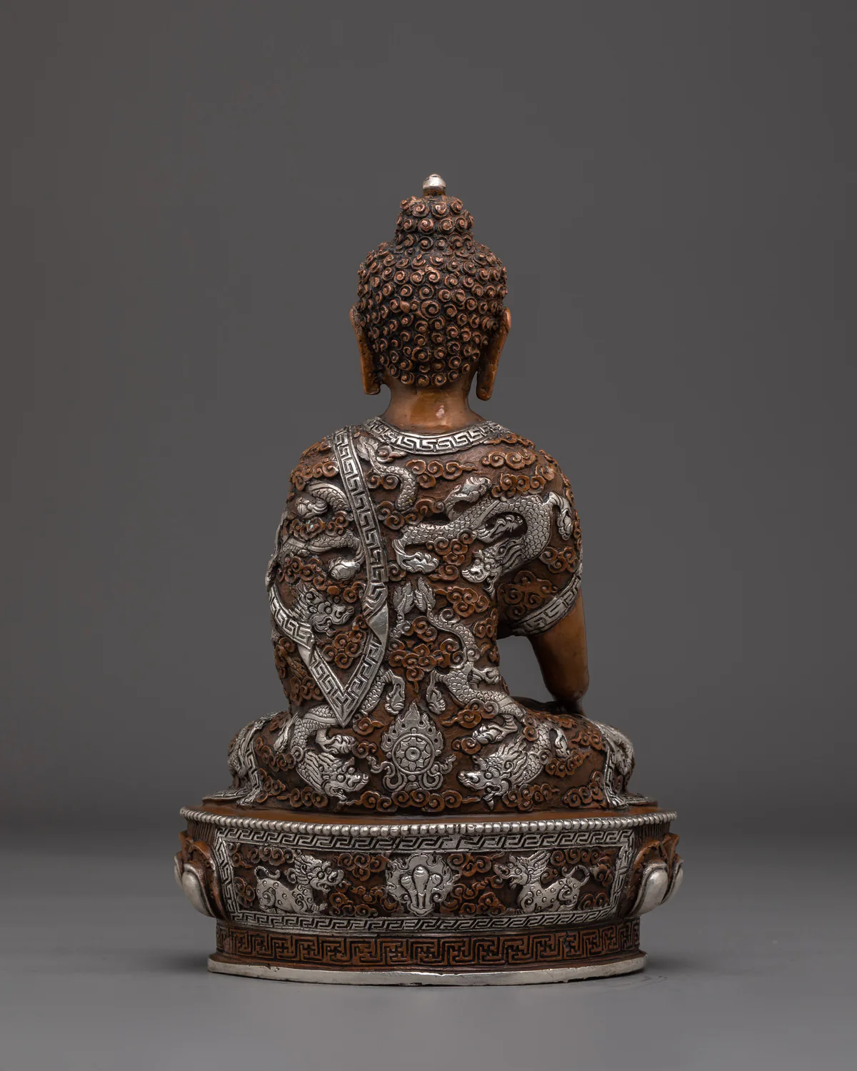 Right hand touching the earth (“Earth Witness Mudra”) — symbolizing his enlightenment under the Bodhi tree.