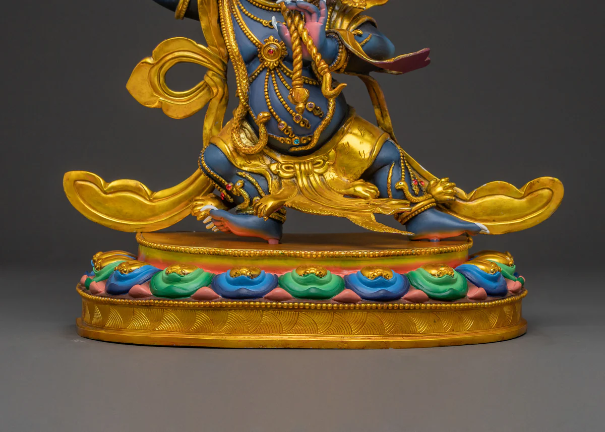 This statue is not just decorative — it is a symbol of courage, protection, and inner strength. The gold plating signifies the noble mind, while the colored body emphasizes Vajrapani’s energy and presence in the material world.